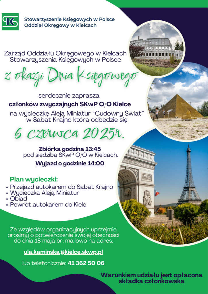 Serdecznie zapraszamy członków SKwP O/O w Kielcach na wycieczkę organizowaną z okazji Dnia Księgowego