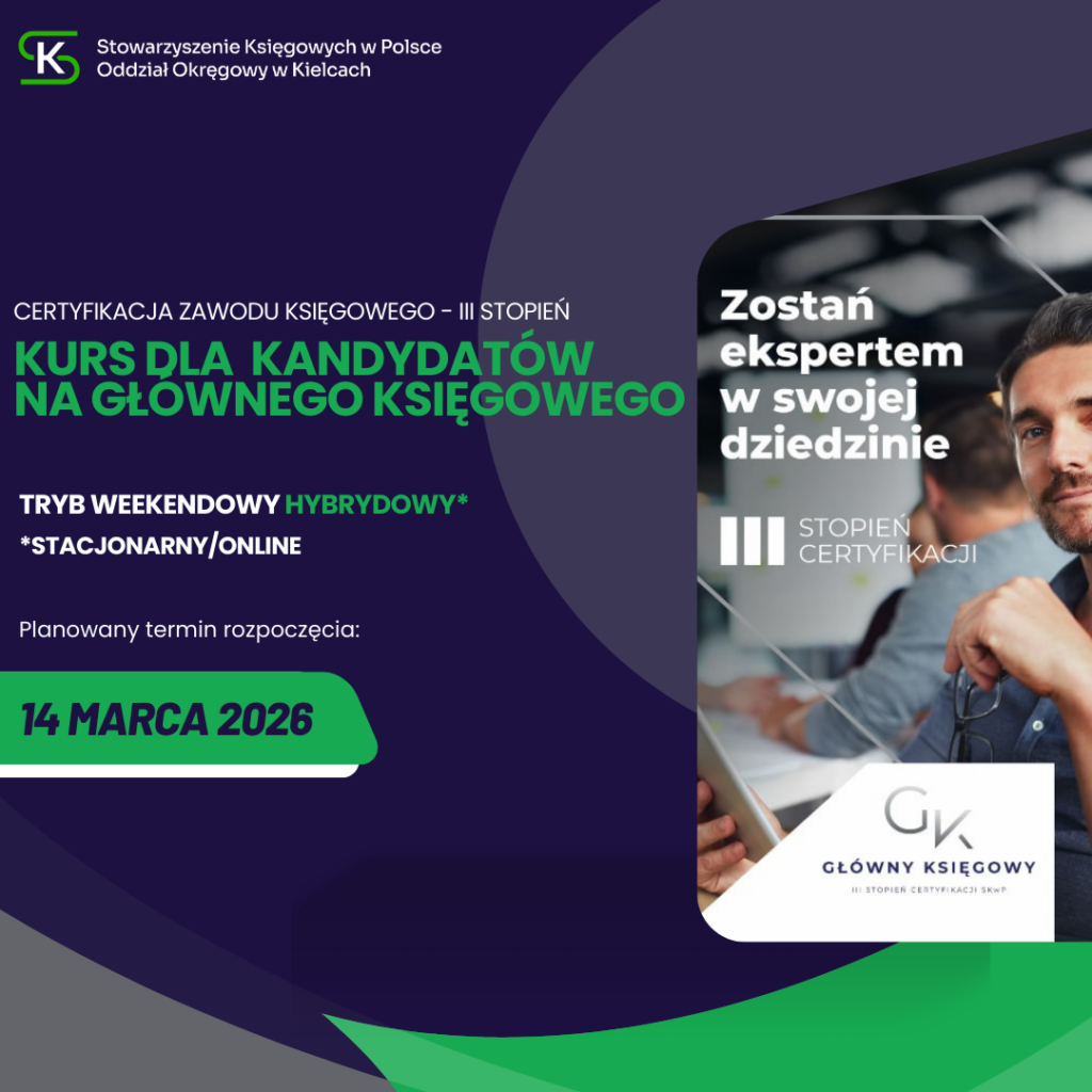 III stopień - Kurs dla kandydatów na głównego księgowego - weekendowy/online