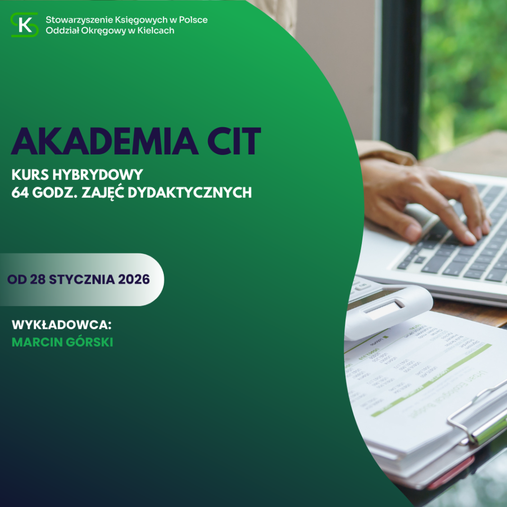 - stacjonarnie - sala wykładowa Oddziału Okręgowego Stowarzyszenia Księgowych w Kielcach, ul. Zagnańska 84a (IIIp.) ZAPISY TUTAJ